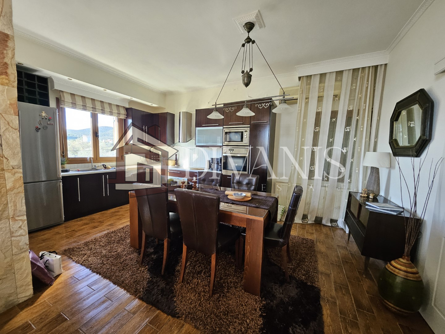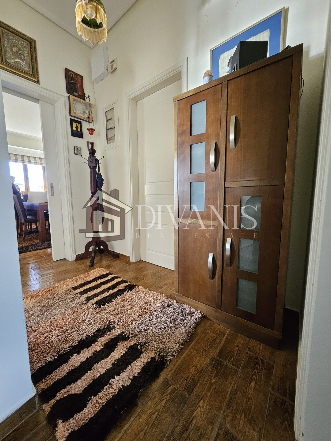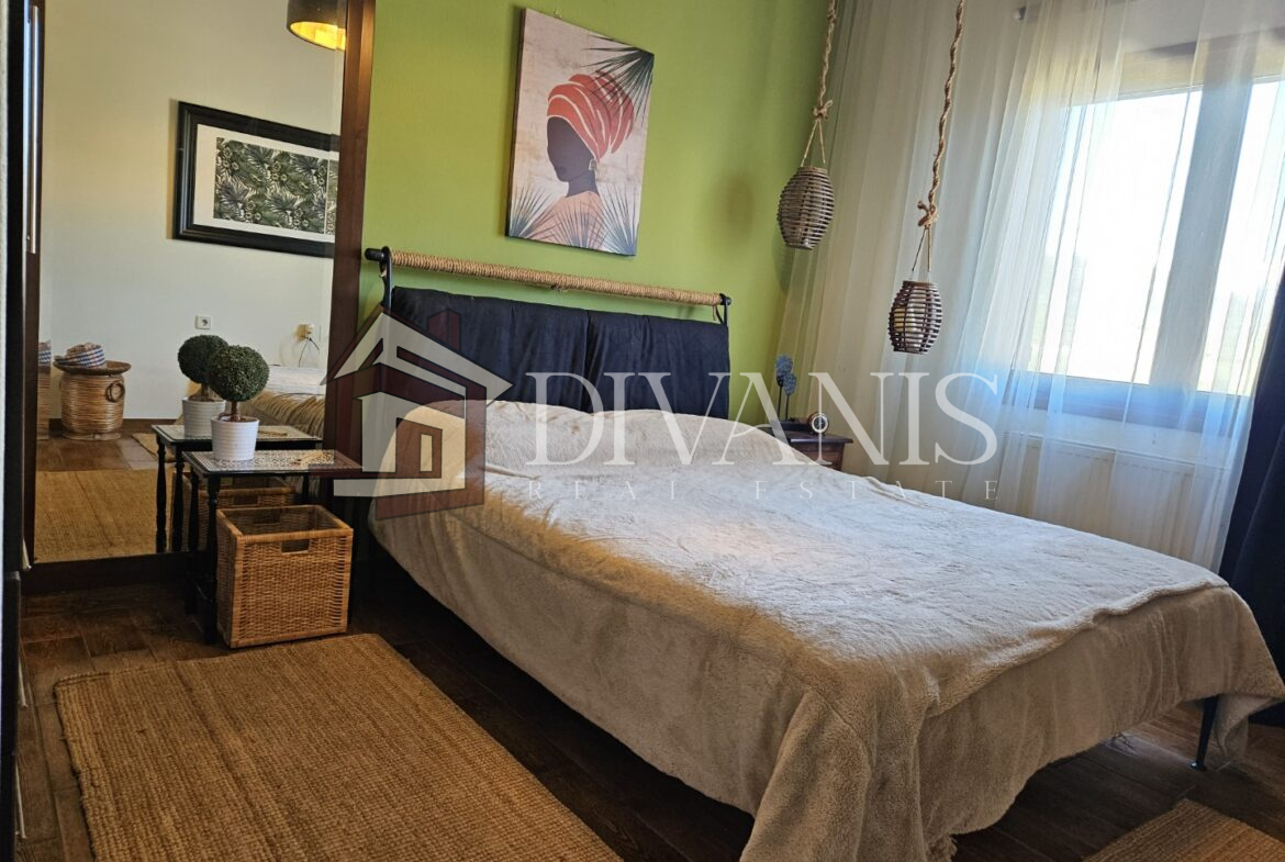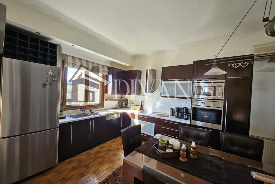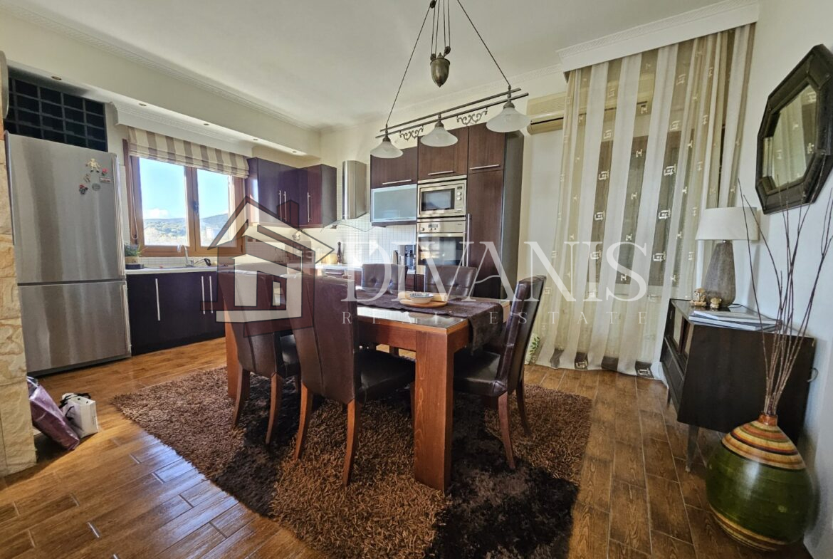 Διαθέτει σαλόνι, τραπεζαρία, κουζίνα, 2 Υ/Δ, λουτρό, χολ. Το διαμέρισμα περιλαμβάνει αυτόνομη θέρμανση πετρελαίου, τζάκι, 2 κλιματιστικά.