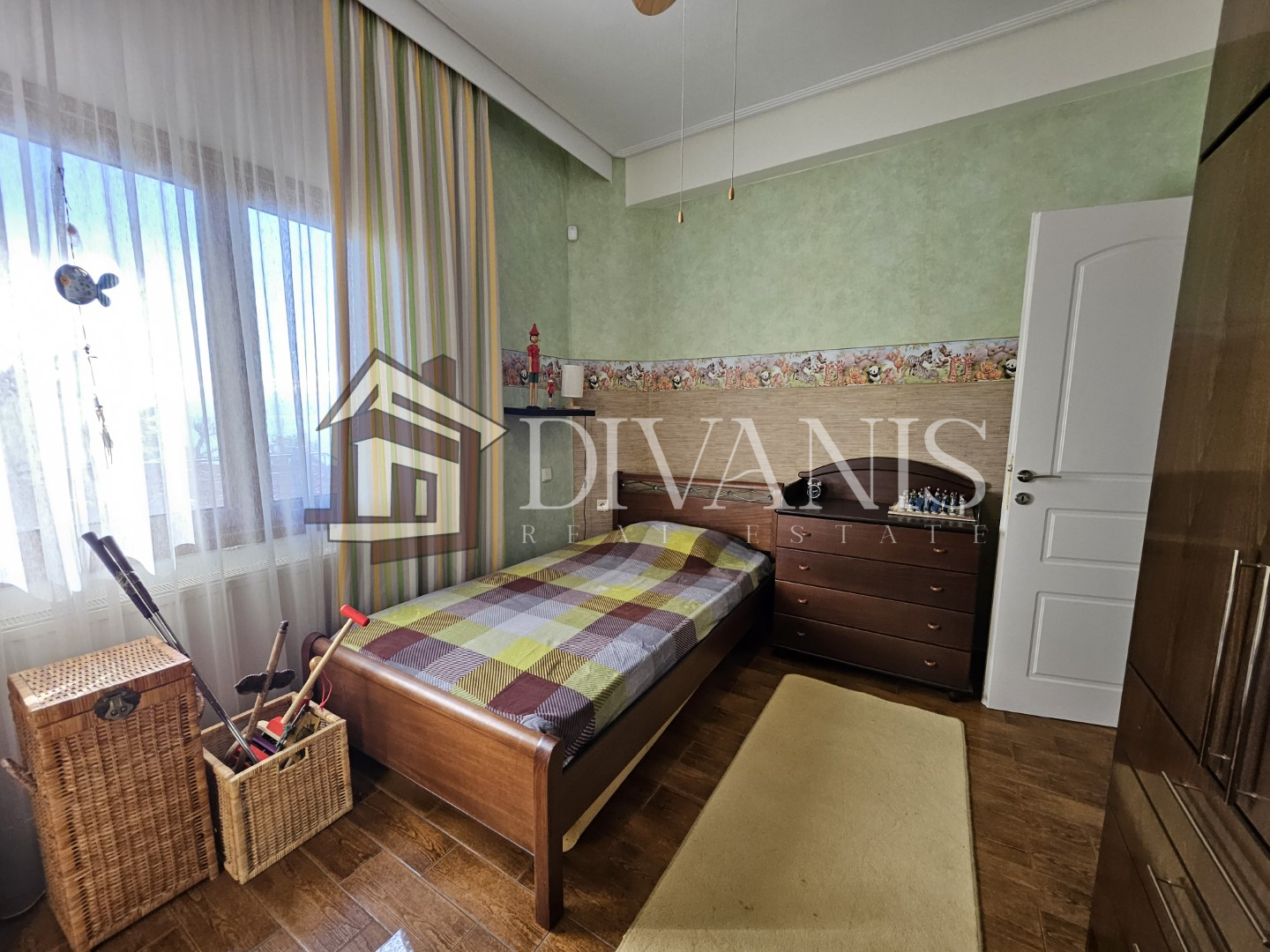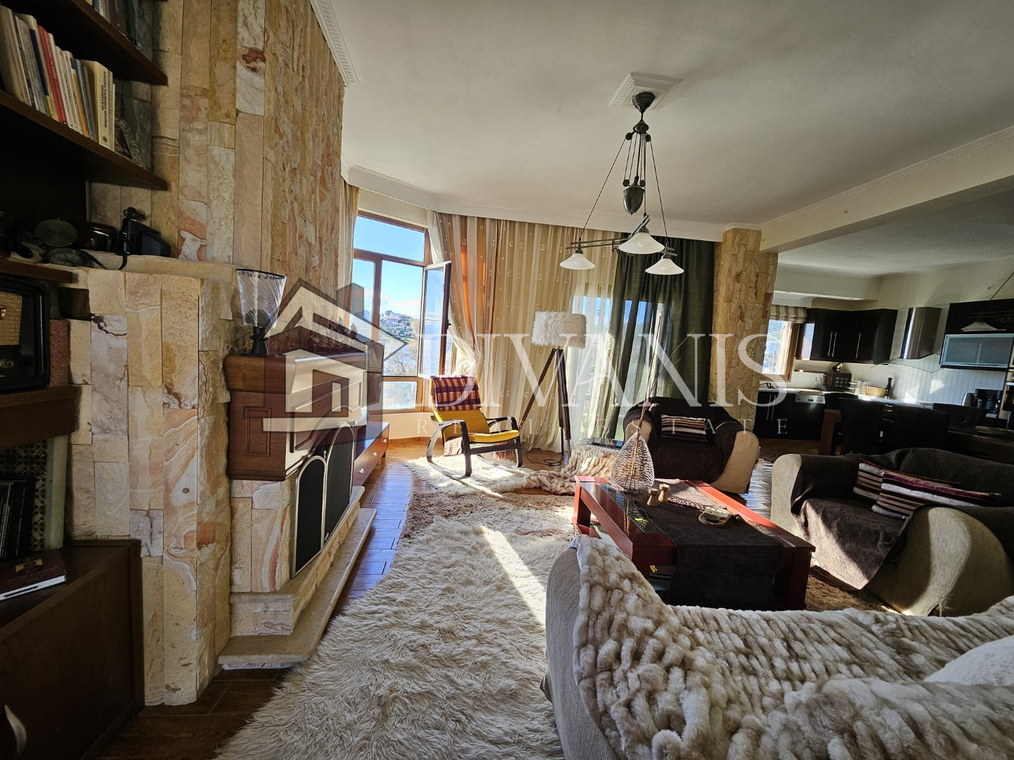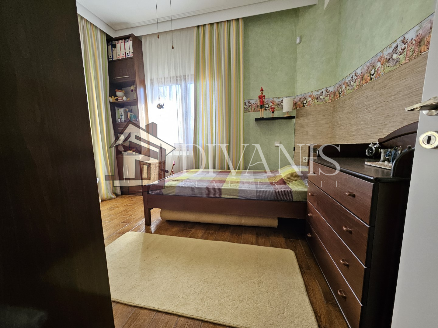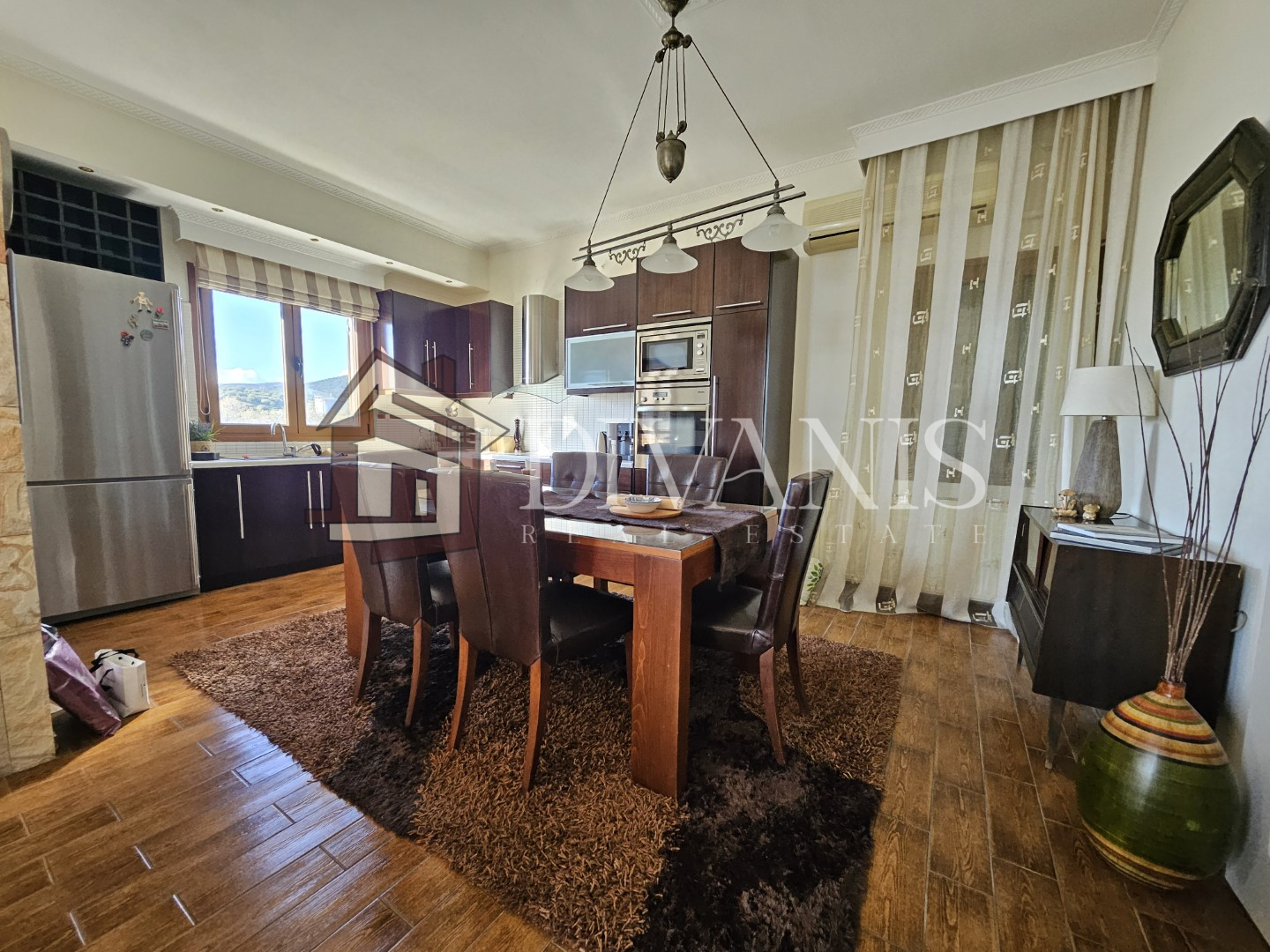 Διαθέτει σαλόνι, τραπεζαρία, κουζίνα, 2 Υ/Δ, λουτρό, χολ. Το διαμέρισμα περιλαμβάνει αυτόνομη θέρμανση πετρελαίου, τζάκι, 2 κλιματιστικά.