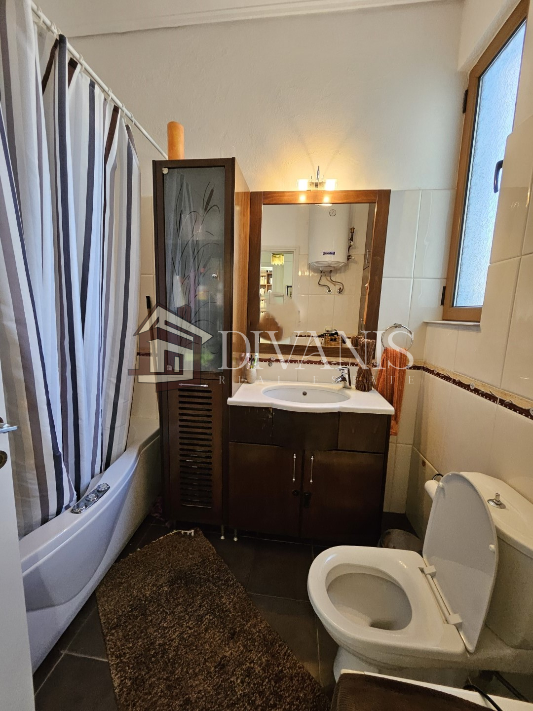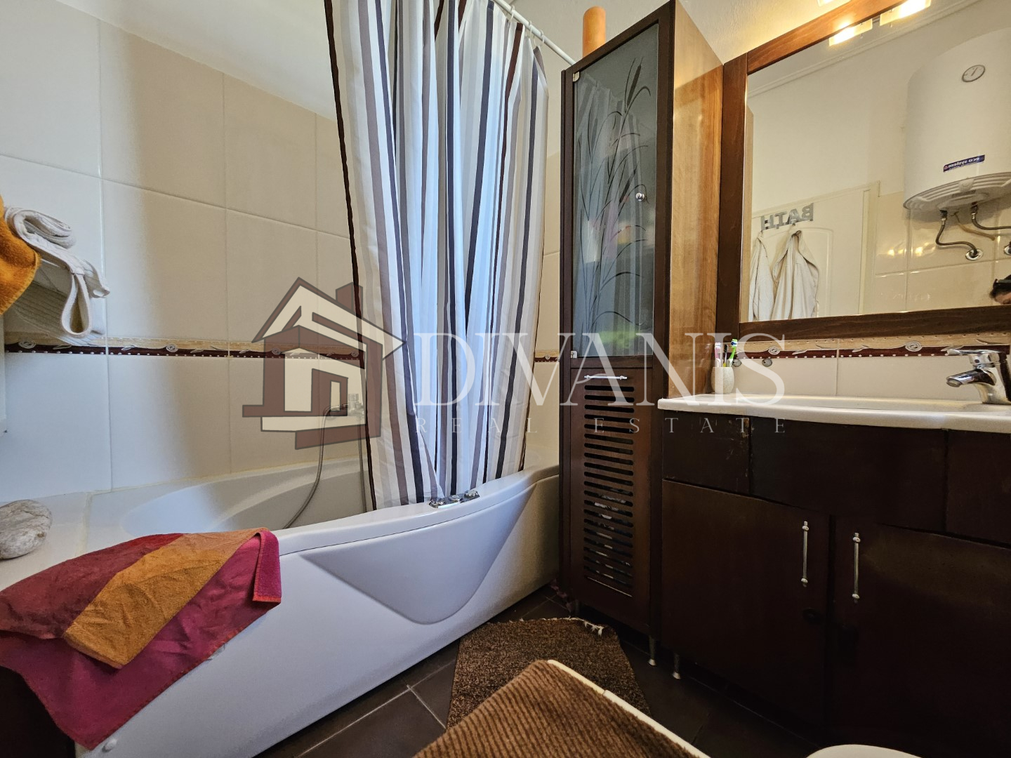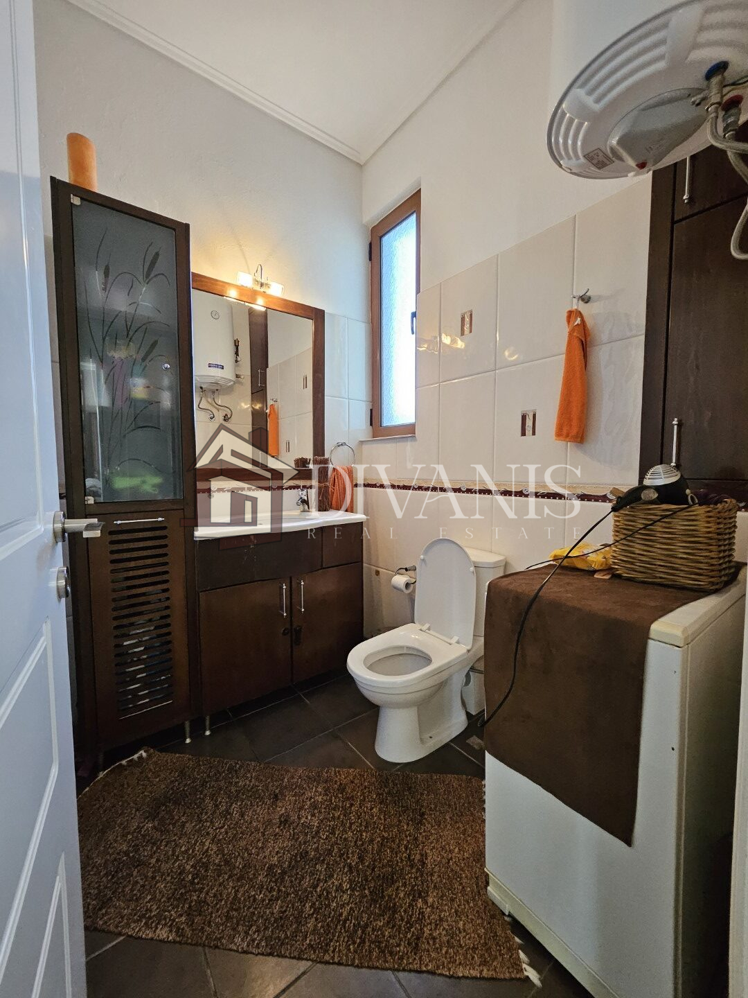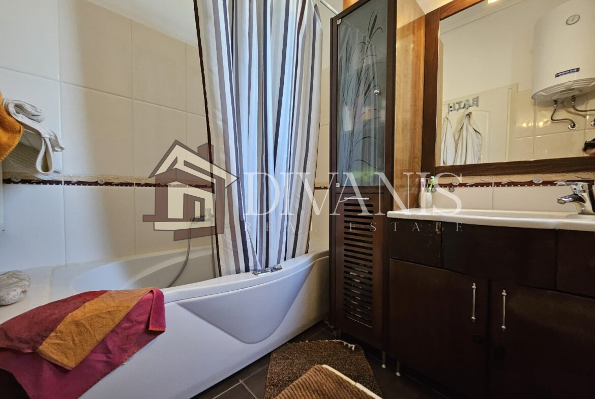 Το μπάνιο διαθέτει υδρομασάζ & θερμοσίφωνα, τα κουφώματα είναι αλουμινίου χρώματος καφέ με κουνουπιέρες, τέντες, συναγερμός, εντοιχισμένες ντουλάπες,