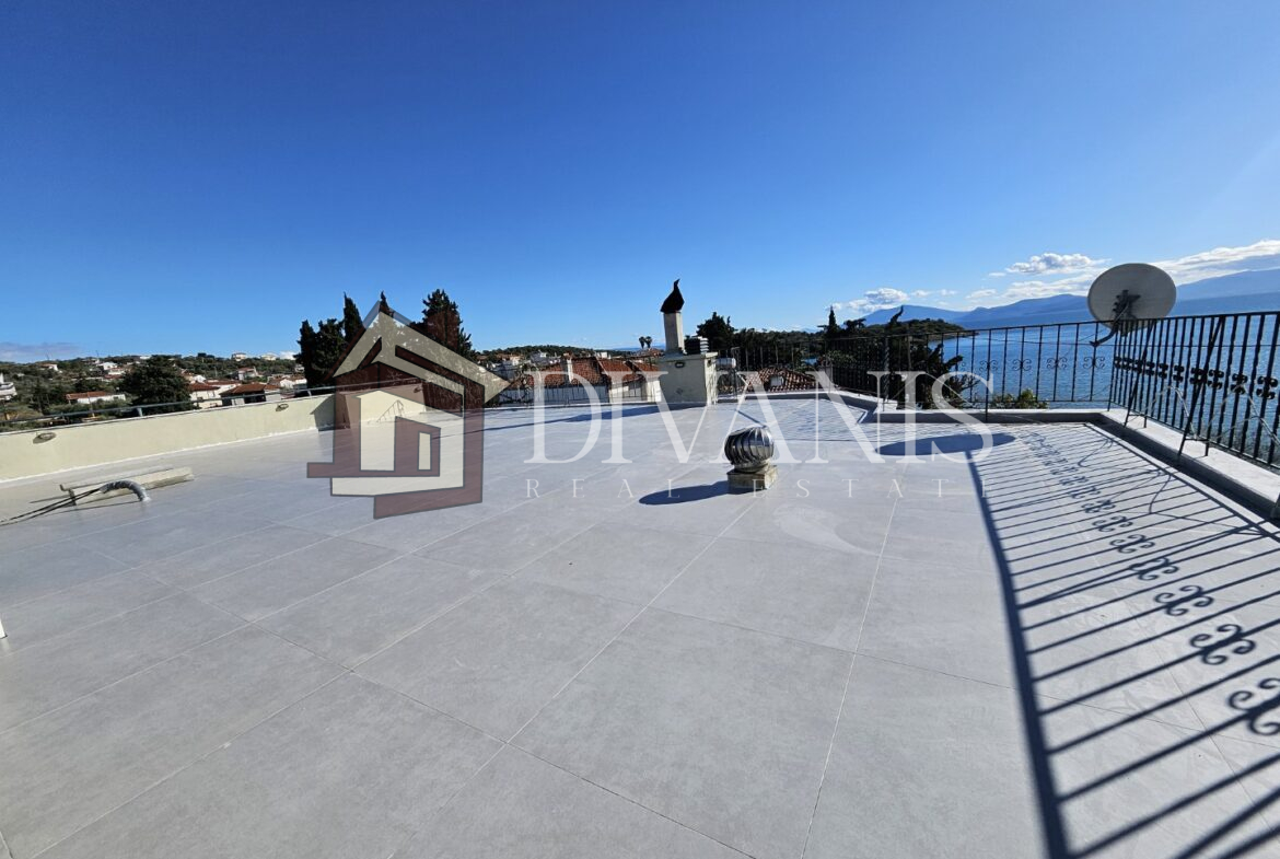 Στην Γαλάζια Ακτή πωλείται ο 1ος όροφος μιας διπλοκατοικίας 84m2, ανακαινισμένος, διαμπερές, με βεράντες, με απεριόριστη θέα στη θάλασσα και 50μ. από αυτήν.